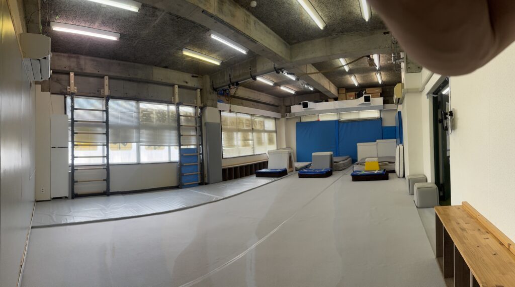 週毎に様変わりする部屋で、充分な運動量の確保と、体操教室に求められる能力向上の期待に添えるよう、工夫と改善を加えています。
