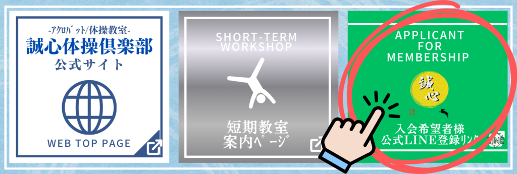 メニュ-の右下入会希望者様公式LINE登録リンクをタップし、誠心体操俱楽部 公式LINEをご登録ください