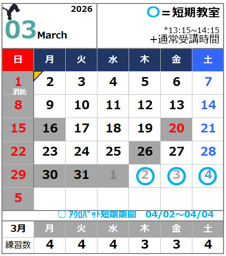 ・アンダーバー( _ )付色数字🏫コマ日は、小学生クラス学校練習