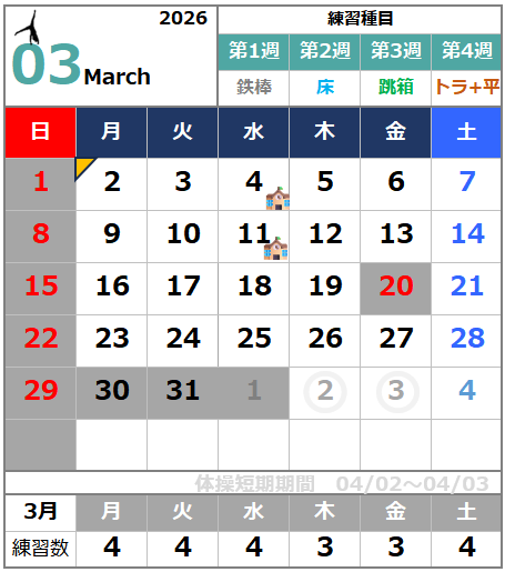 ・5週目種目は、お休み日の種目か未定