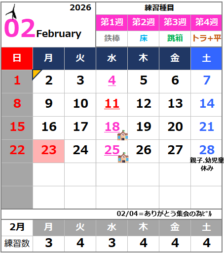 *6月は3日・1月は5日・2と3月は2日を月初として、7日刻みで種目を変更いたします